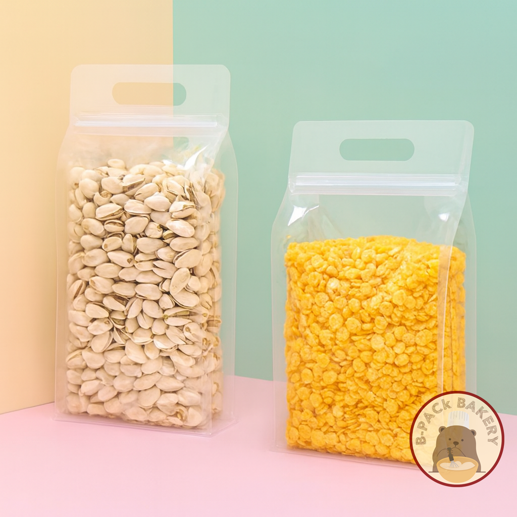 ถุงซิปเนื้อใสรูปทรงแนวตั้ง ซิปรูดปิดสนิท ด้านข้างขยายได้ ก้นถุงสามารถวางตั้งได้