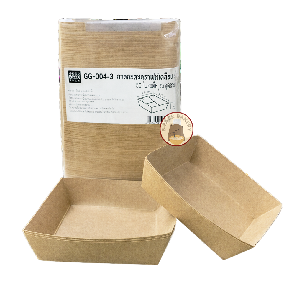 ถาดกระดาษคราฟท์เคลือบ (น้ำตาล) 300g 4.5x4.5x1.5นิ้ว