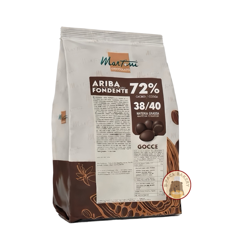ARIBA Dark 38-40 72% Cocoa by Martini Gelato is a professional dark chocolate in drops with 72% cocoa and 38/40% cocoa butter.